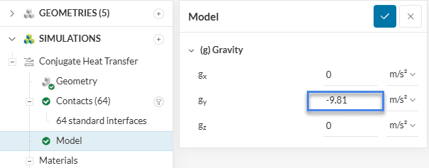 In the Model tab, it’s possible to define the direction and magnitude of gravity:
