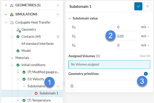 After saving the cylinder primitive, it is automatically assigned to the velocity subdomain.