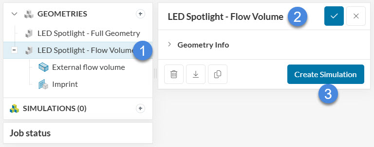 Once the geometry is ready, it will have the same name. In case you would like, you can always change the name of the new geometry to something more representative. After saving the name change, we are ready to ‘Create a Simulation’.