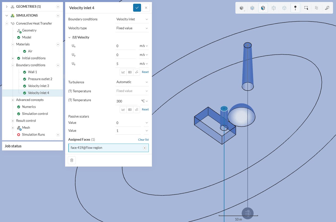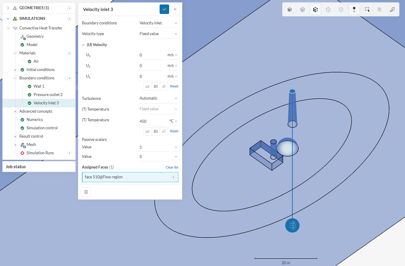 Set up another velocity inlet, this time for the short chimney:
