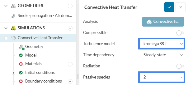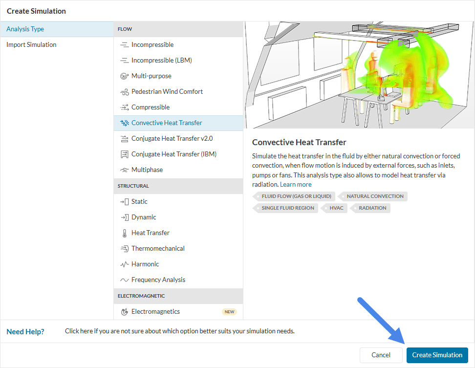 Choose ‘Convective heat transfer’ for analysis type and ‘Create the simulation’.