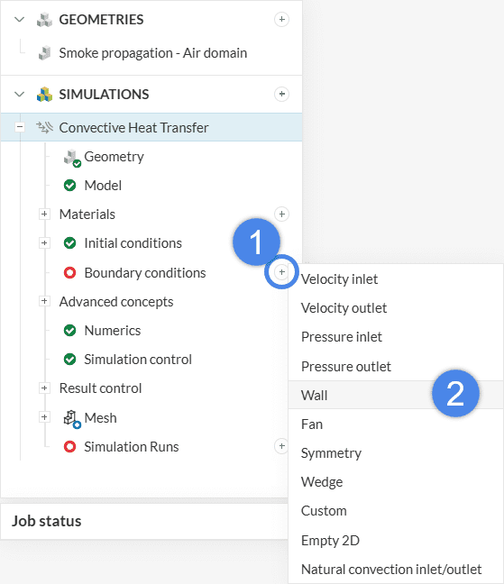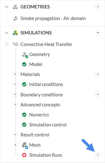 To set up a new simulation, select the geometry in the left-hand side panel:
