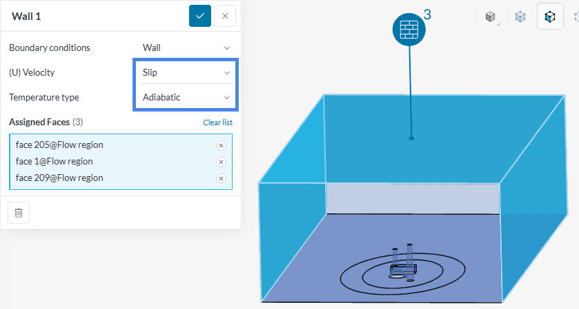 Change (U) velocity to ‘Slip’ and (T) Temperature to ‘Adiabatic’. Now assign the top, left, and right walls to this condition.