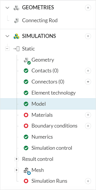 A new Simulation tree will automatically be generated on the left side of your Workbench, containing all parameters and settings required to start the simulation.