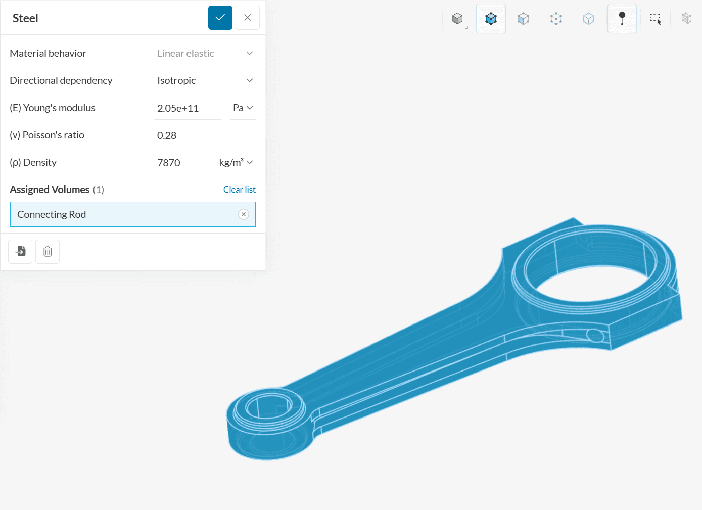 In this tutorial, you will learn to quickly set up a basic structural simulation of a connecting rod and conduct stress analysis using SimScale.