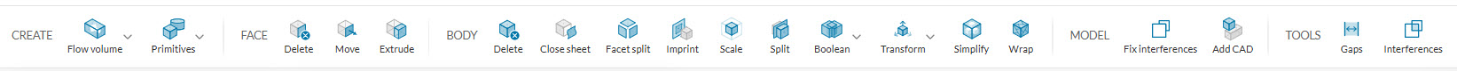 For every internal fluid simulation, we need a volume in the CAD model representing the fluid domain. In order to create a flow region or make modifications to the CAD model, we are going to use the CAD environment. To modify a CAD model, simply select the geometry from the list—the available CAD operations will then appear in the top toolbar. You can either work directly on the original model or create a duplicate and apply your changes to the copy.:
