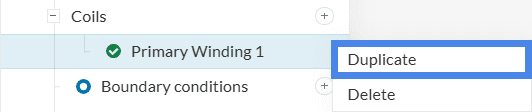 For the remaining primary windings (2 and 3), simply duplicate the existing coil settings by right-clicking on Primary Winding 1 and selecting Duplicate.