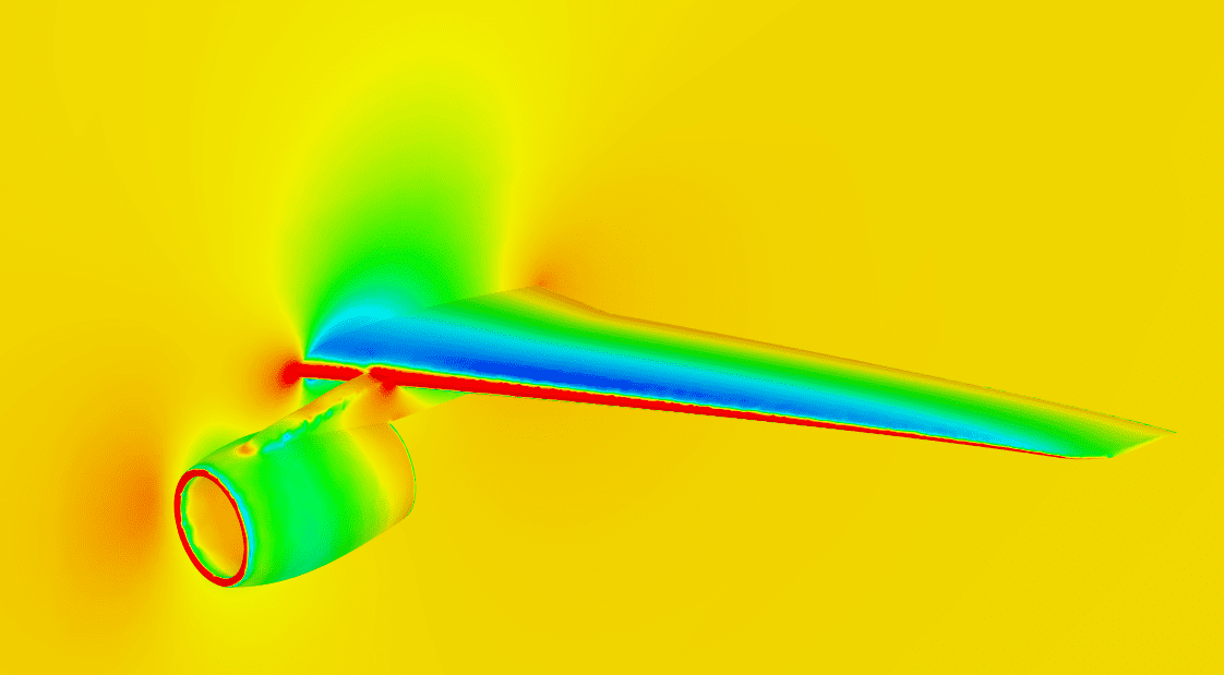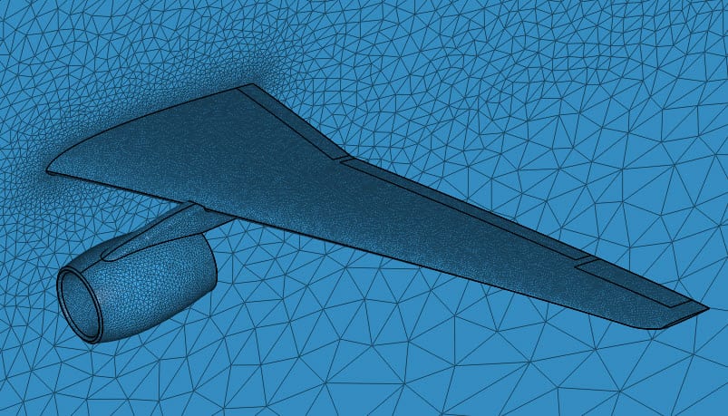The resulting mesh takes about 10 minutes to complete. After the operation, the mesh looks like this around the wing: