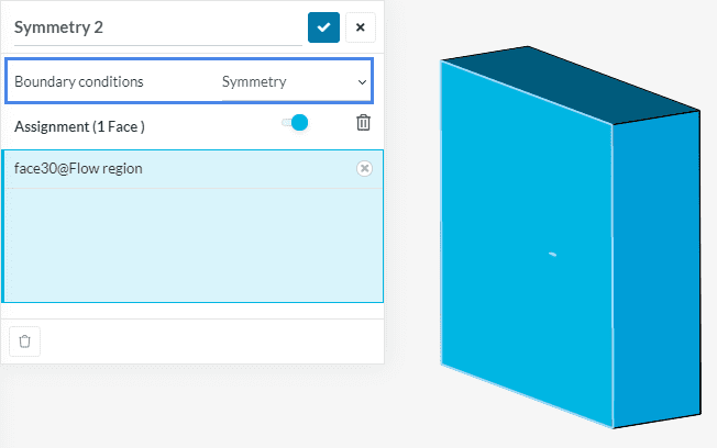 Create a new boundary condition, but this time choose ‘Symmetry’. Assign it to the enclosure face adjacent to the wing.