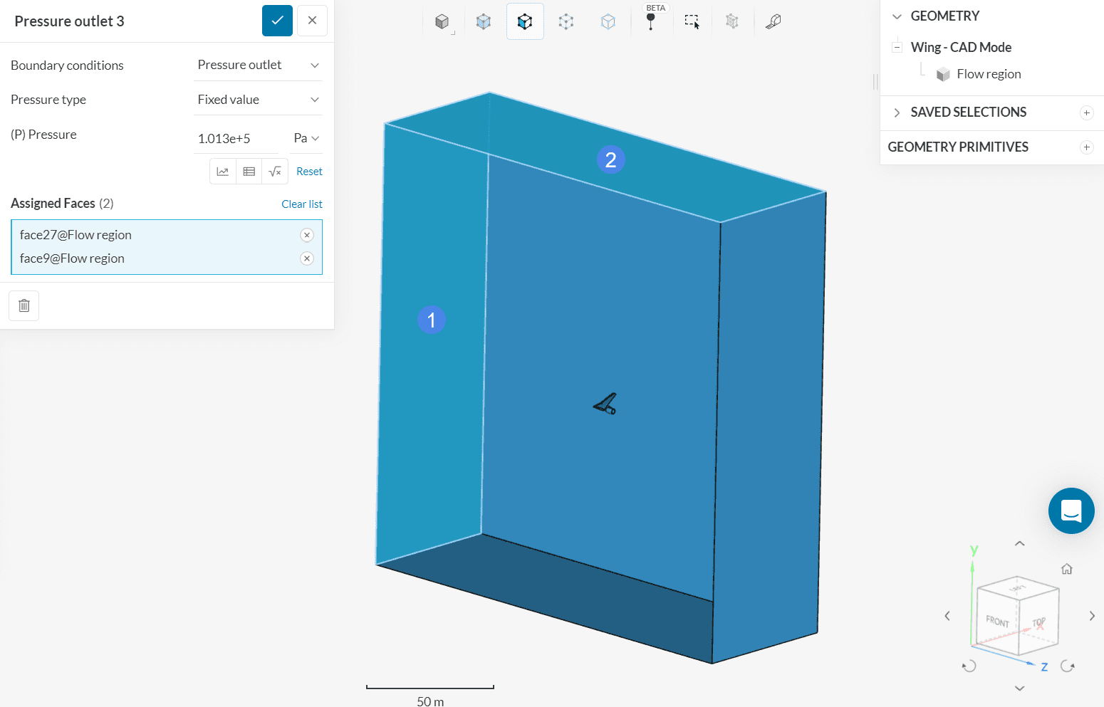 Saved selections help to assign a group of faces all at once. As we need all the faces of the wing to be modeled as physical walls, let’s group them as a saved selection.