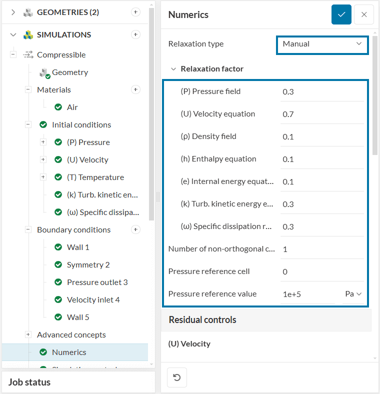 In the Numerics tab, make sure the Relaxation type is Manual. Retain the values of the Relaxation factors as shown in Figure 26.