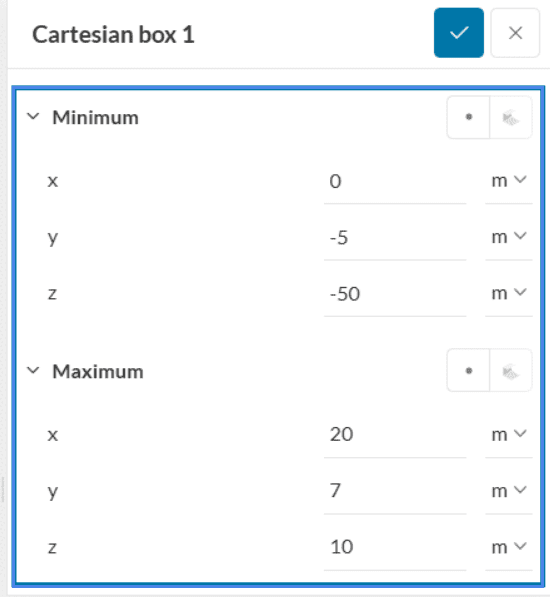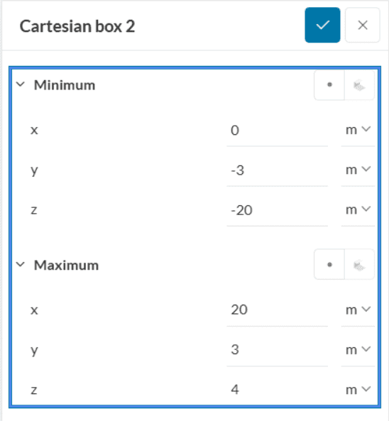 Similarly, we create a second geometry primitive. This is also a cartesian box but with the following coordinates:
