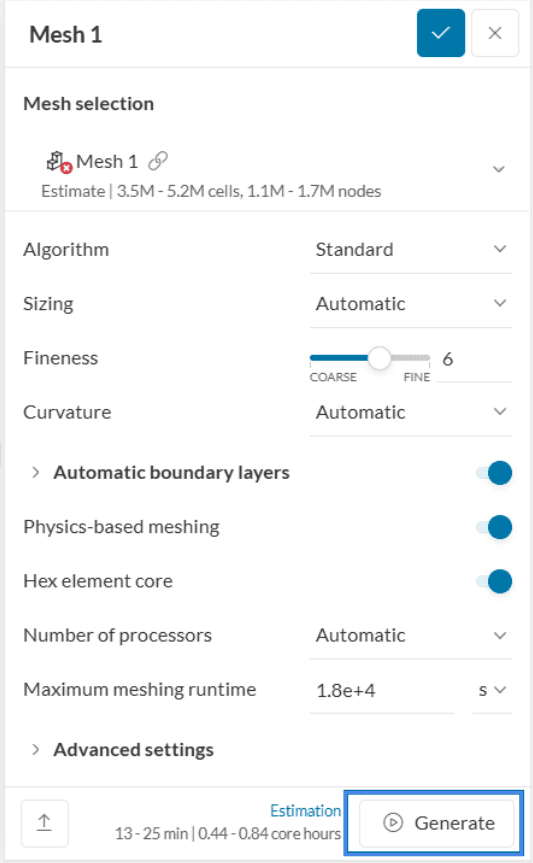 At last, head back to the main mesh settings and hit ‘Generate’.