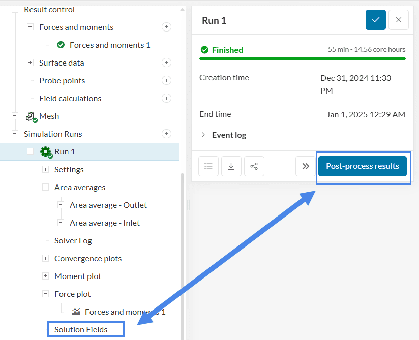While it’s running, you can access the intermediate results by clicking on ‘Solution Fields’. They’re updated as the iterations go by!
