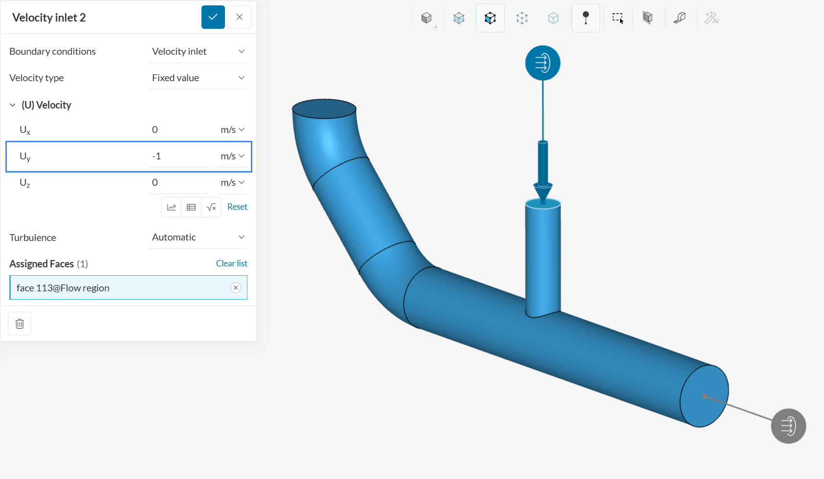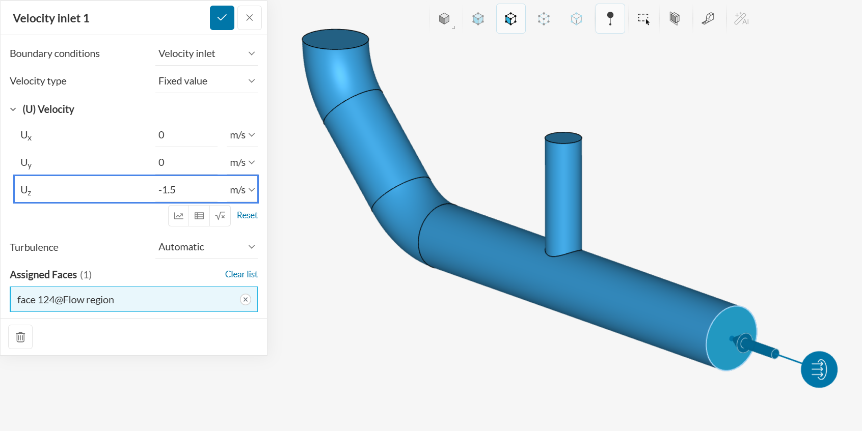 Select the horizontal face in the viewer. This will assign the face as a velocity inlet.