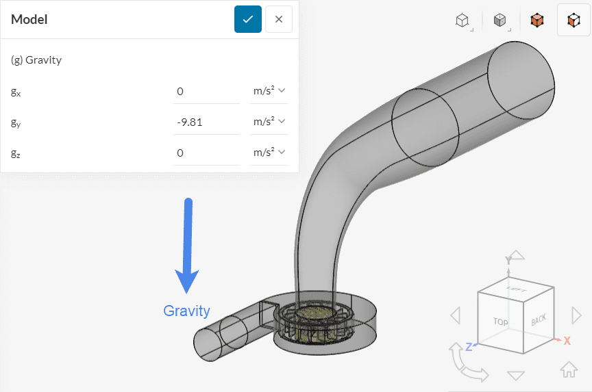 Click on ‘Model’ from the simulation tree and set gy to ‘-9.81’ \(m/s^2\).