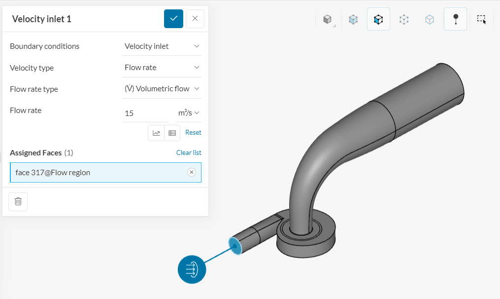 After selecting ‘Velocity inlet’, the user has to specify some parameters and assign faces. Please proceed as below: