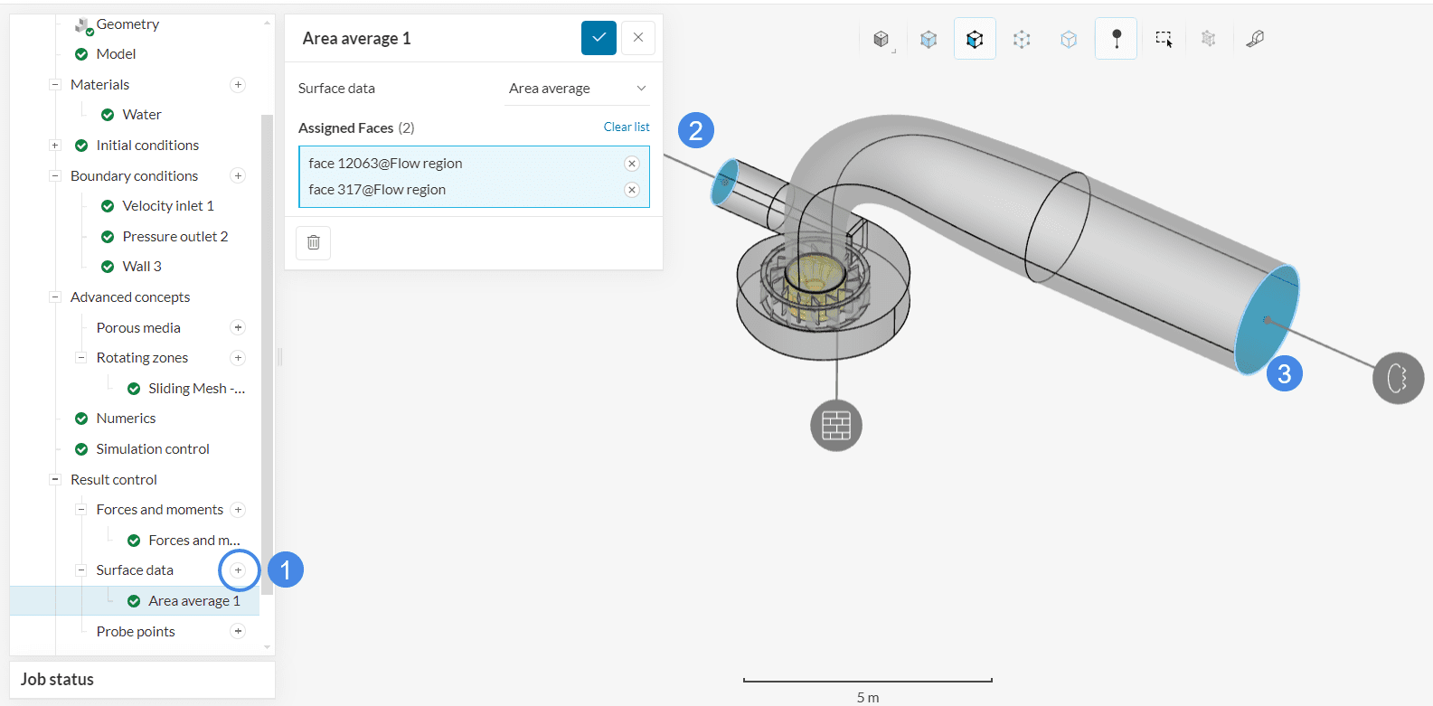 For the second control, click on the ‘+ button’ next to Surface data. Create an ‘Area average’ control for the inlet and the outlet, as shown in Figure 18 below.