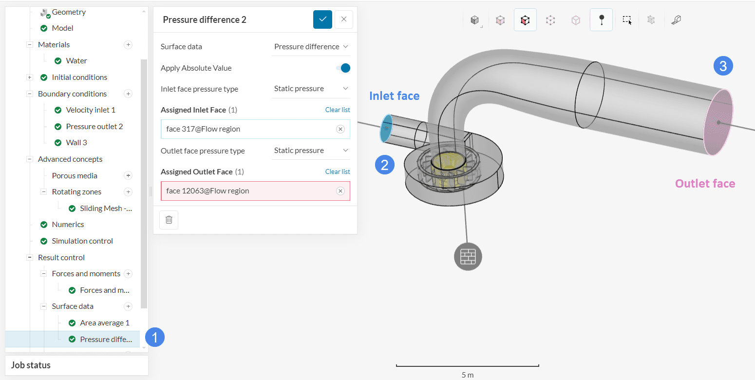 We can also get the pressure difference between the inlet and the outlet directly as follows: