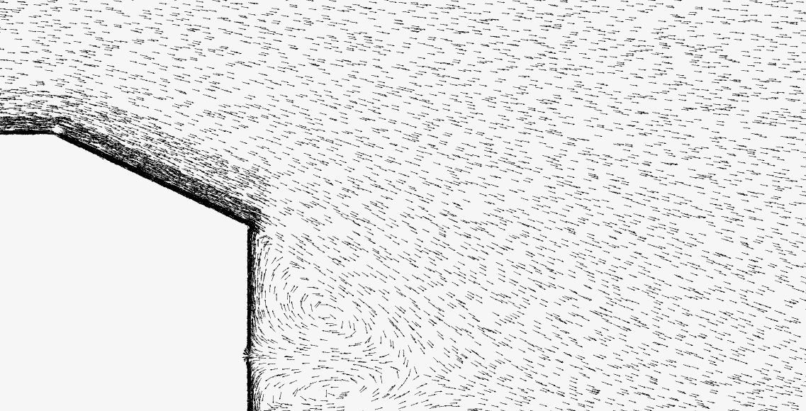 The velocity streamline contour of the mean flow obtained with the simulation is reported in Figures 6 and 7, together with experimental results for reference in Figure 8.