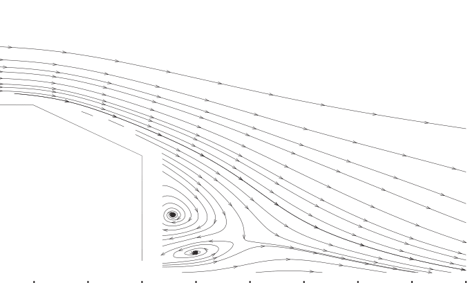 The velocity streamline contour of the mean flow obtained with the simulation is reported in Figure 5, together with experimental results of reference.