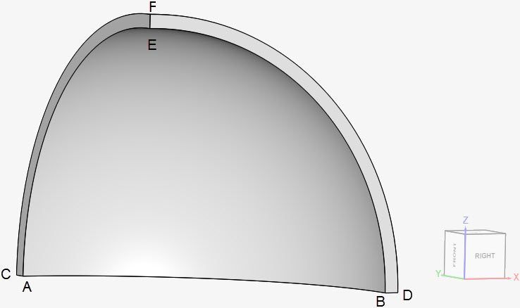 The geometry consists of 1/8th of a sphere, with an inner radius of 0.19 \(m\) and an outer radius of 0.2 \(m\).
