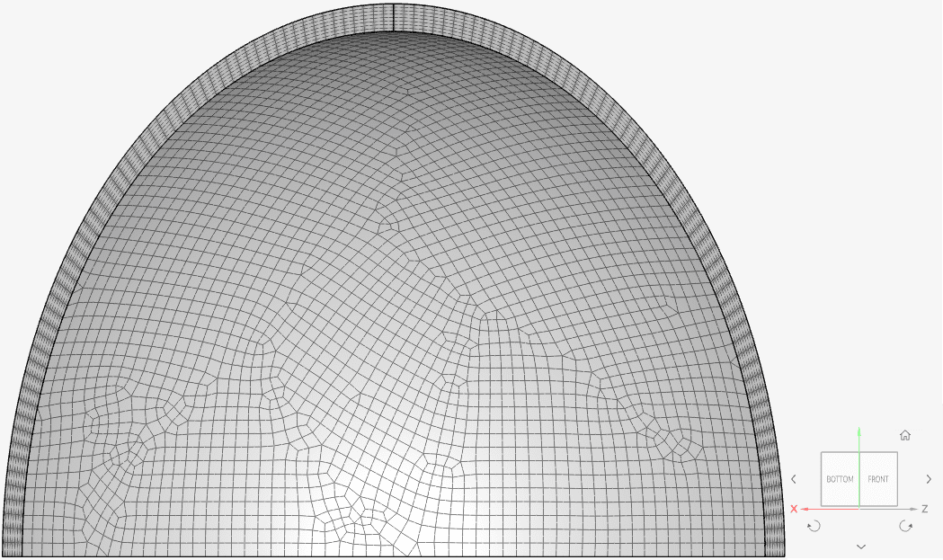 Find below the mesh used for both cases. It’s a standard mesh with second order hexahedral-dominant elements.