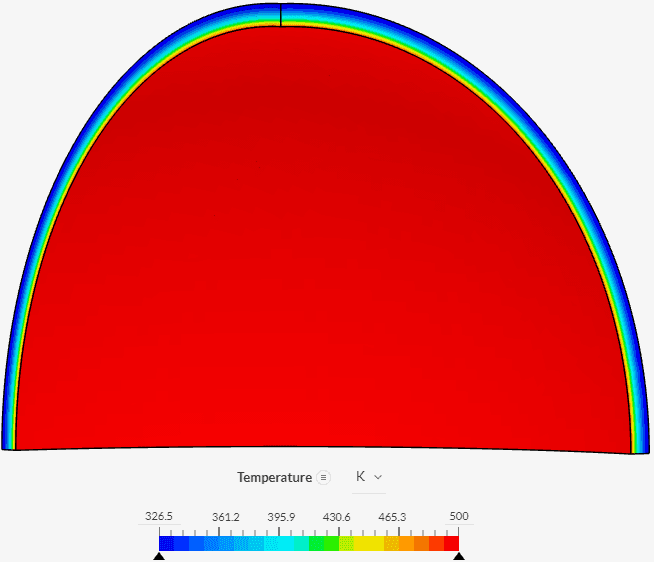 In Figure 4, we can see how temperature is changing in the sphere’s width, for the last time step: