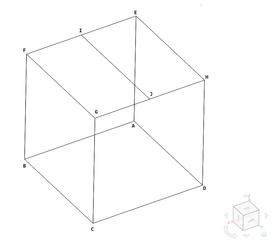 The cube has an edge length of 1 \(m\), with the upper face partitioned in half.
