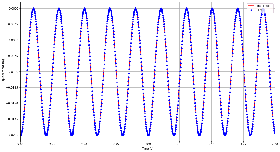 Comparison of transient displacement of face ABCD in dynamic case can be found in Figure 3. Here the vibrations from the elastic support condition can be appreciated.