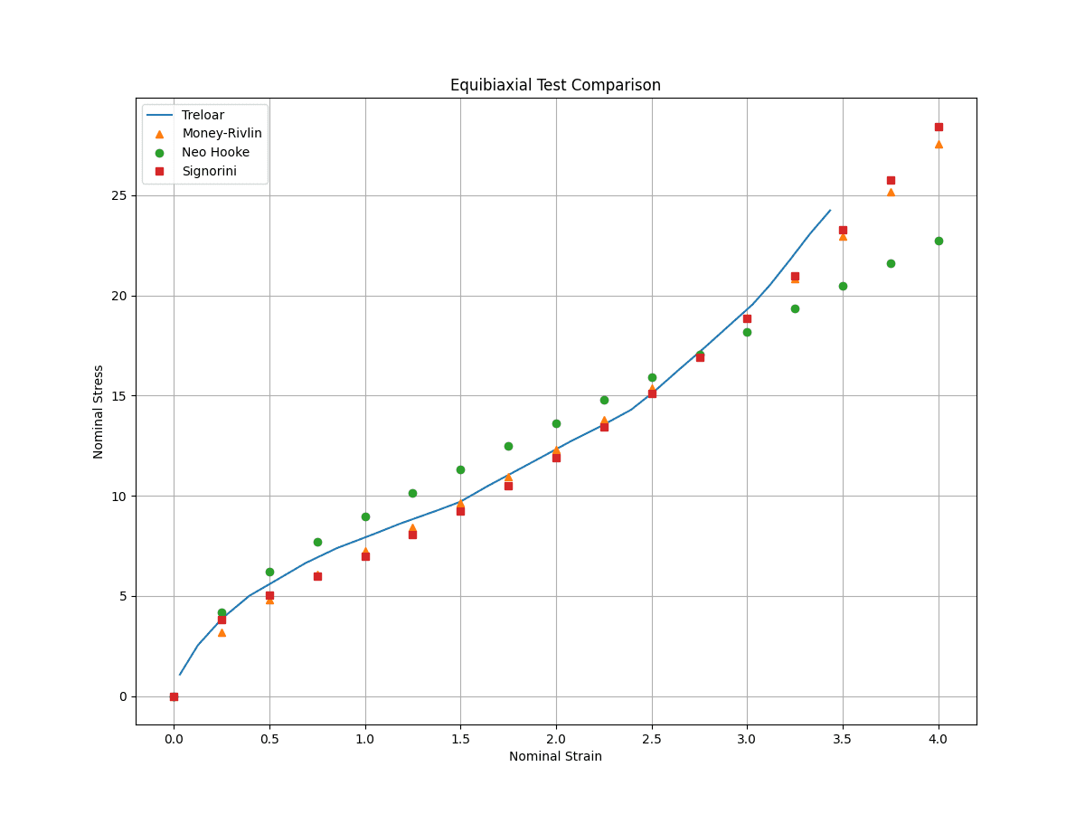 Comparison of the nominal stress-strain curves computed from reaction force on the faces with zero displacement, versus the reference data is shown in Figure 3: