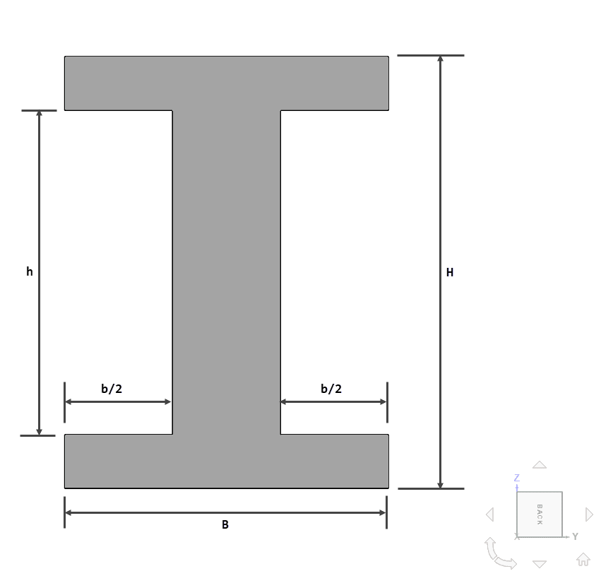 $$ I = \frac{1}{12} ( B H^3 – b h^3) \tag{3} $$