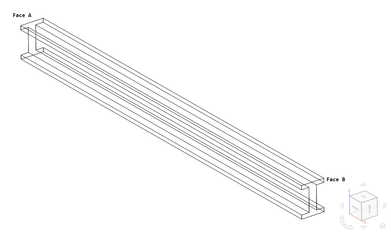 The beam has a length \(L\) of 1 \(m\), with the cross-section dimensions as shown: