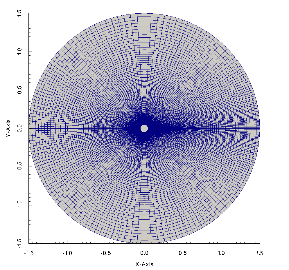An O-type domain is selected as the flow domain around the cylinder. For cylinder diameter \(D\), the domain is 15 \(D\) in the radial direction and \(\pi D\) in the span-wise direction (see Figure 2).