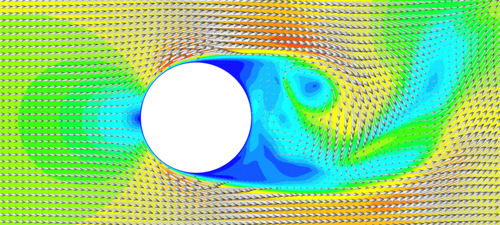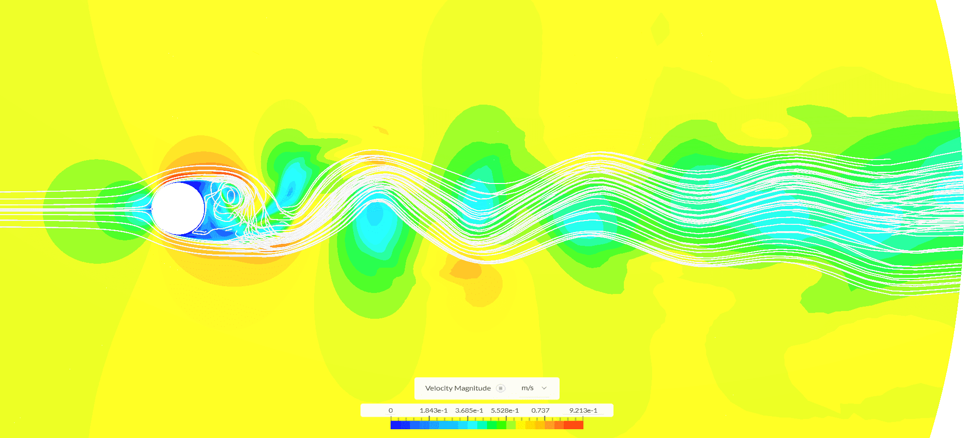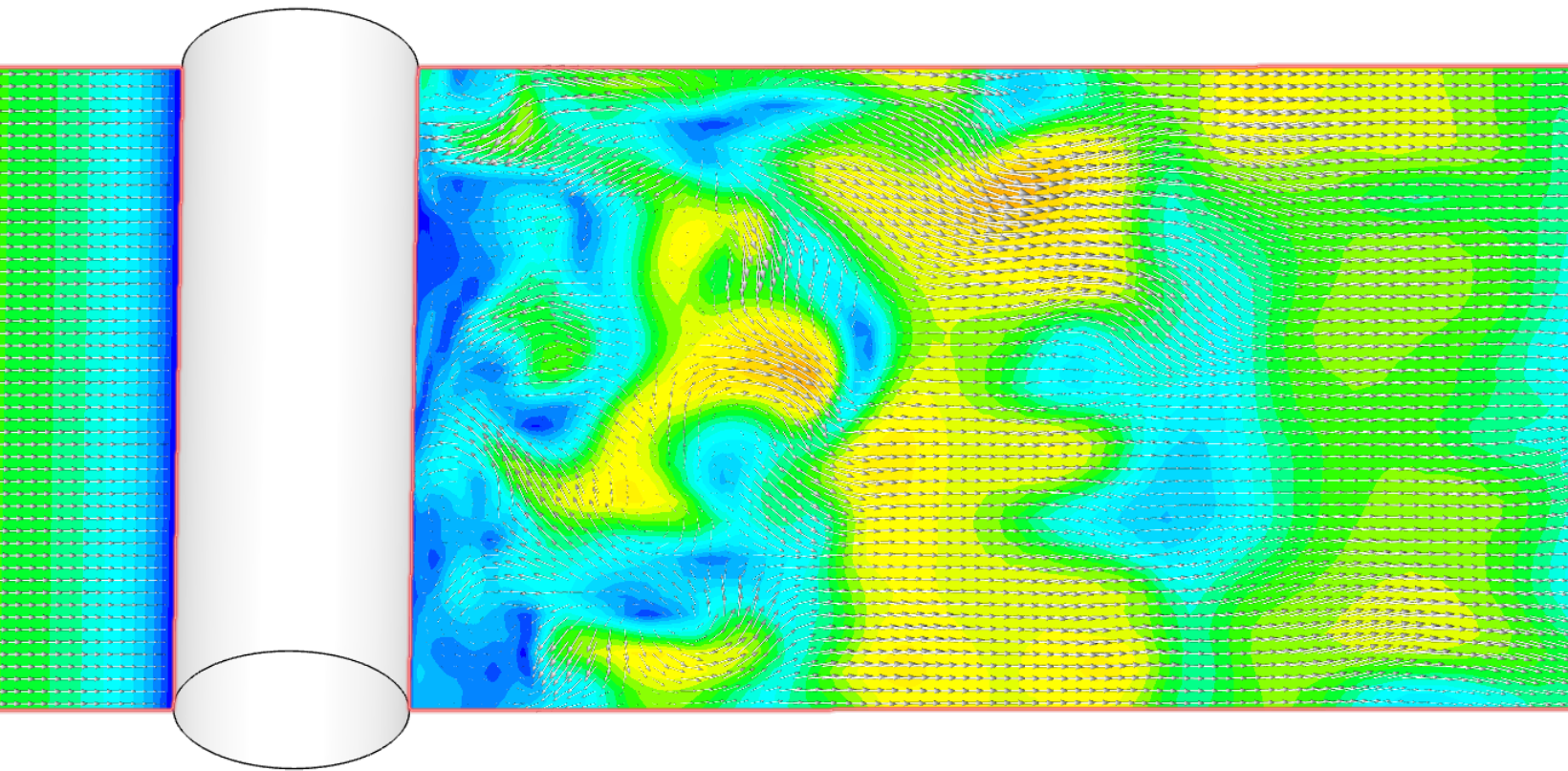 The purpose of this numerical simulation is to validate the following parameters of the incompressible Large Eddy Simulation (LES) flow over a cylinder: