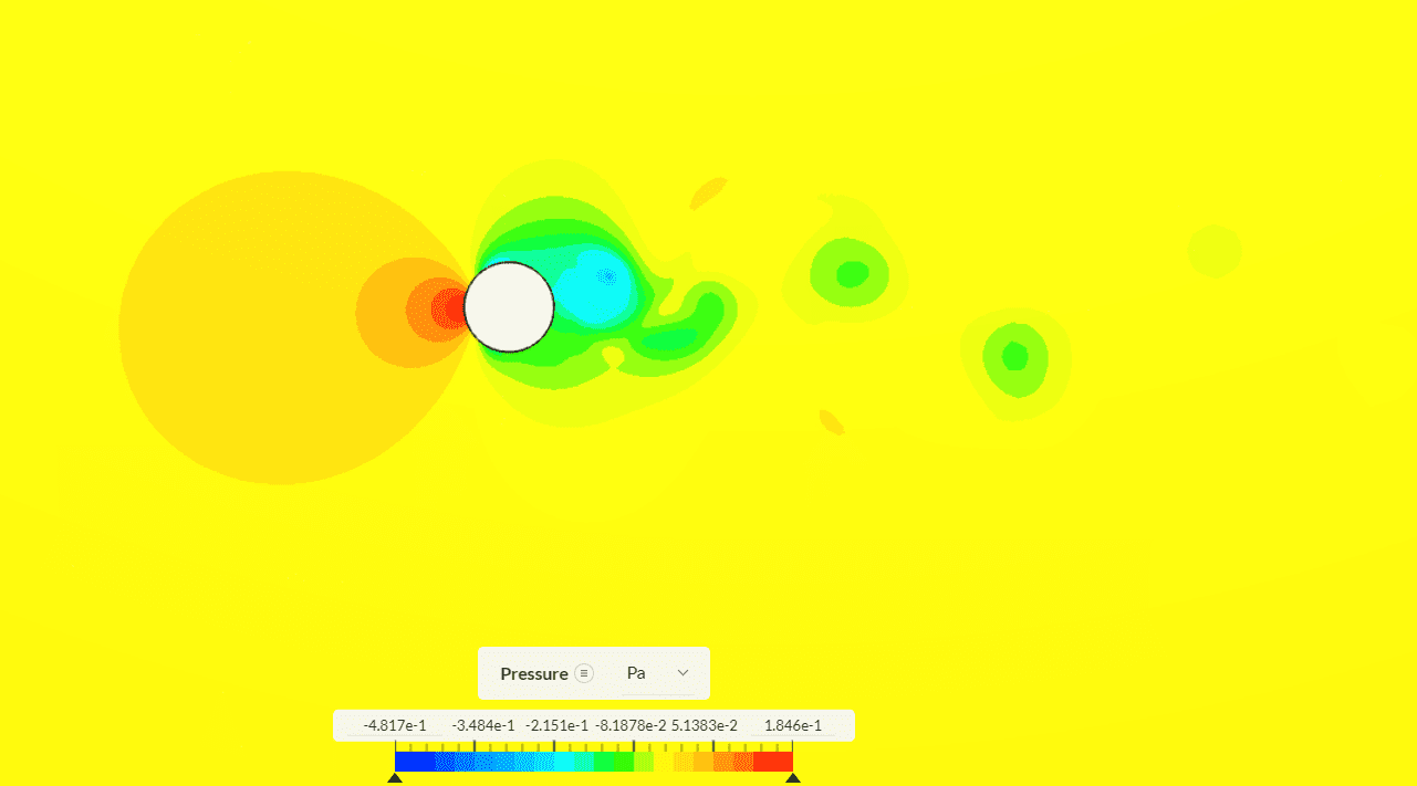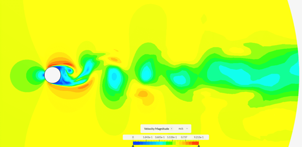 To ensure meaningful results, it was ensured that the simulation was run for at least 3 fluid passes. The distance from the cylinder to the outlet is 1.5 \(m\). Thus, for the 0.59 \(m/s\) inlet velocity, 3 fluid passes would take approximately 8 seconds. The simulation was run for 12 seconds to achieve trustworthy results.