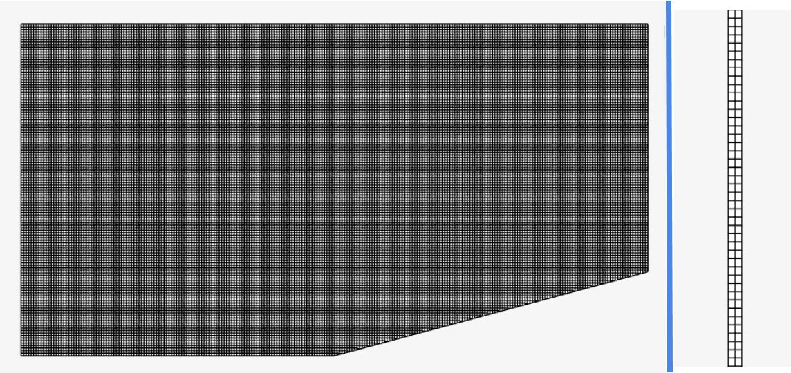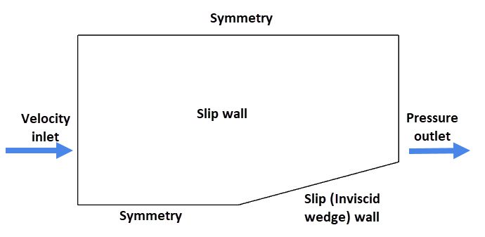 The geometry replicates a flow domain with an inviscid wedge. It has a tiny thickness to represent a two-dimensional flow. The geometry is inspired from the schematic\(^1\) as shown in Figure1: