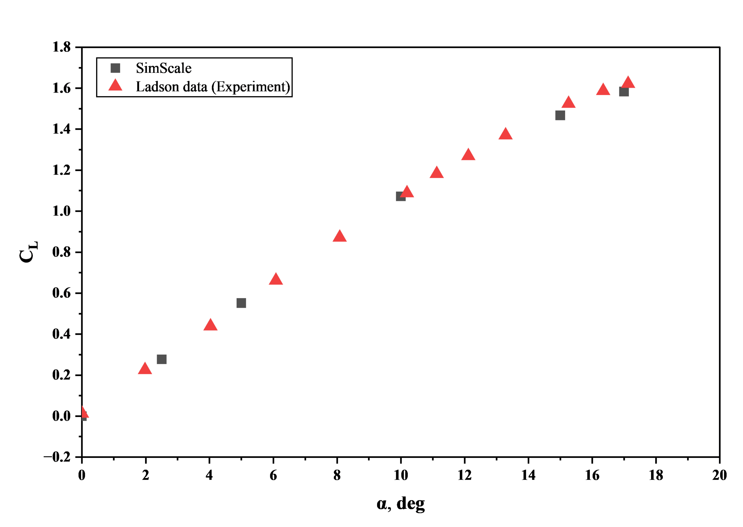 Figure 4 presents the lift coefficient values obtained from SimScale in comparison with the corresponding experimental results.