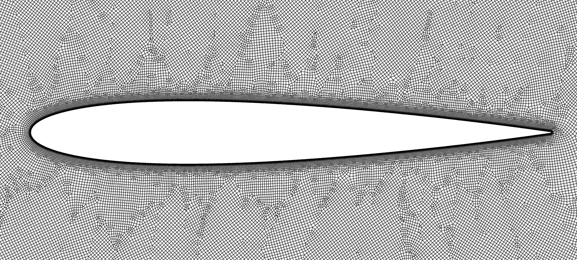 The NACA 0012 is a widely studied symmetric airfoil, with extensive experimental data available, particularly from the work of Charles Ladson [Ladson]\(^2\) in the report “Effects of Independent Variation of Mach and Reynolds Numbers on the Low-Speed Aerodynamic Characteristics of the NACA 0012 Airfoil Section.” This foundational study analyzed the low-speed aerodynamic behavior of the airfoil, making it a reliable benchmark for validating CFD simulations. By comparing numerical predictions of lift, drag, and pressure distribution with the experimental results, this case serves to evaluate the robustness and accuracy of the turbulence model and overall simulation setup.