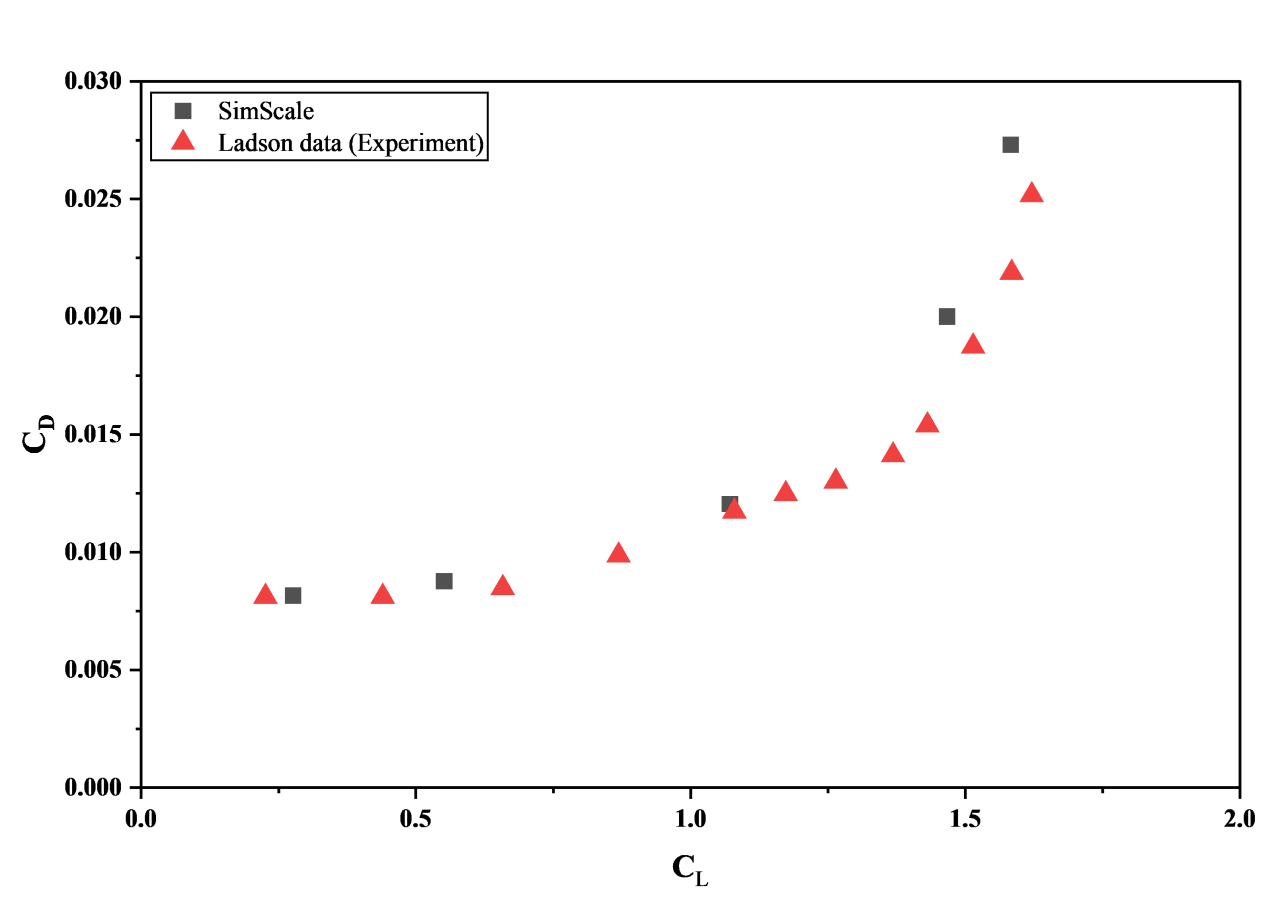 Figure 5 presents a comparison between the drag coefficients from SimScale and experimental results, plotted against the corresponding lift coefficients.