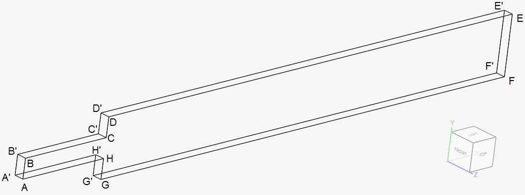 The corresponding nodes marked with an apostrophe (‘) are translated 0.5 m along the negative z-direction.