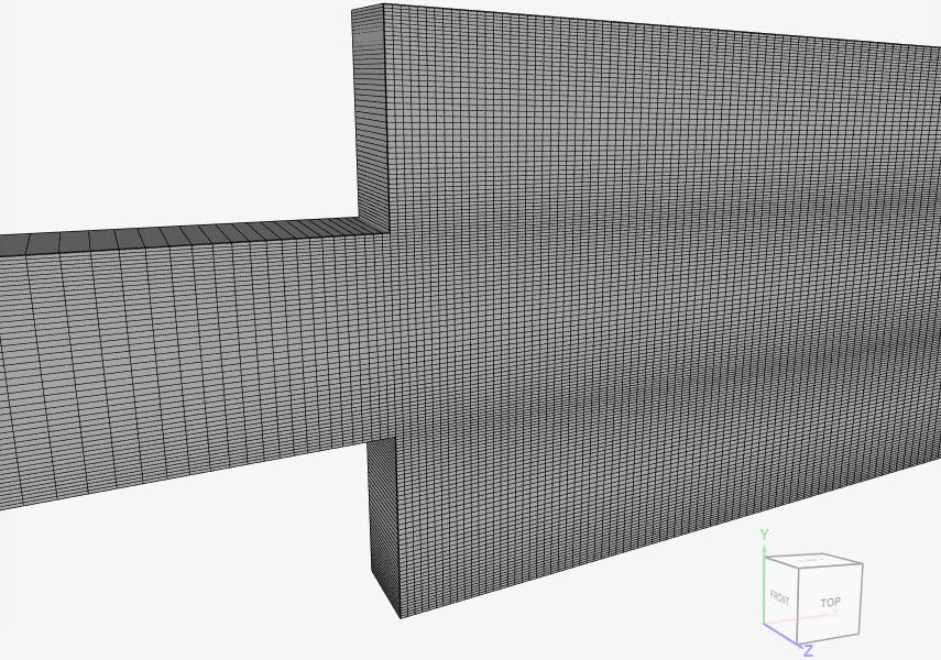 Find below the 30700 cells intermediate fineness hexahedral mesh. It contains a single cell in the z-direction.