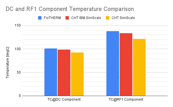 From Table 3 and Figure 7 above, the DC and RF1 component temperatures are within 5% and 8% of the reference FloTHERM results respectively.