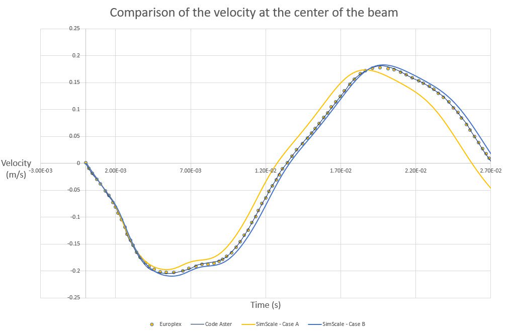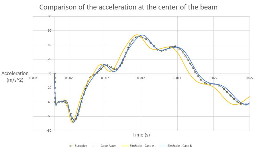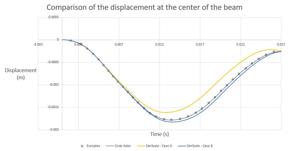 The simulation results from SimScale were compared to the Europlexus and Code Aster results presented in [SDLS123]\(^1\).