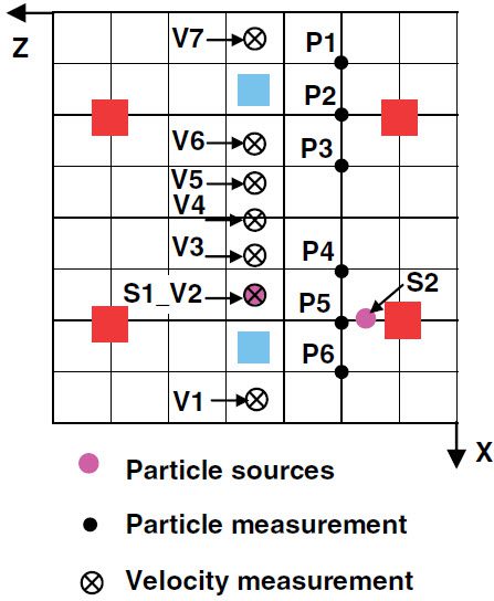 The validation is performed against experimental data obtained by Zhang and Chen\(^1\), who analyzed the particle transport and distribution in ventilated rooms.