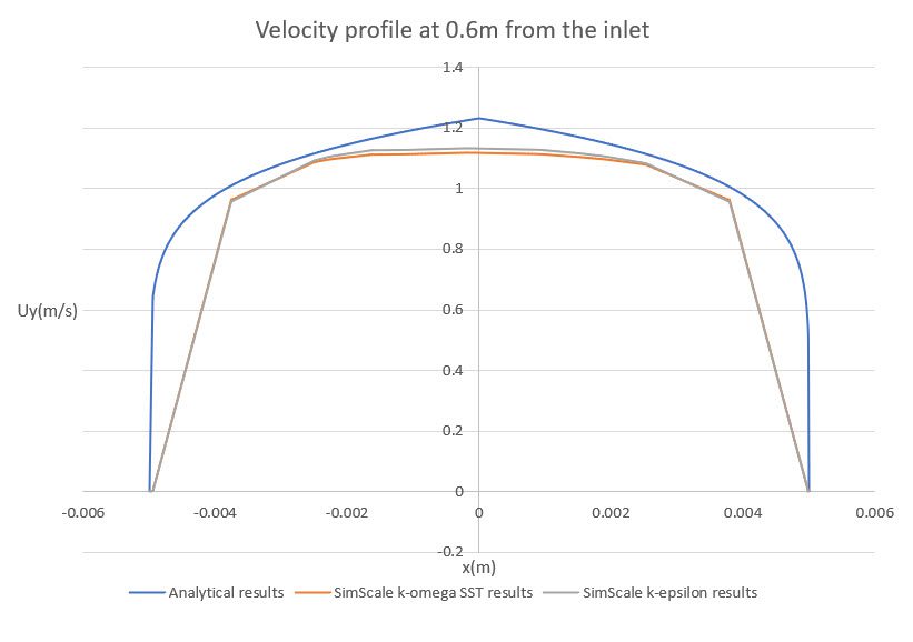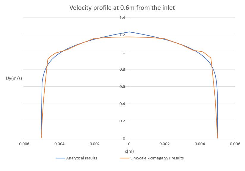 The following graph shows the developed velocity profile, located 60 \(cm\) from the inlet: