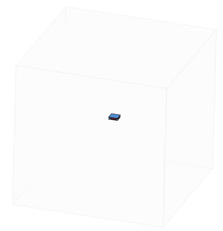 An air domain is created around the assembly in order to run the simulation. The resulting geometry is the following: