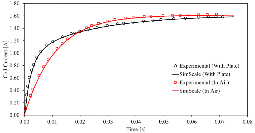 The data shows a consistent trend, confirming that the SimScale Stranded Coil formulation effectively replicates the physical behavior of voltage-forced electromagnetic systems. This high degree of agreement validates the modeling approach for use in more complex, non-linear, or transient industrial applications.