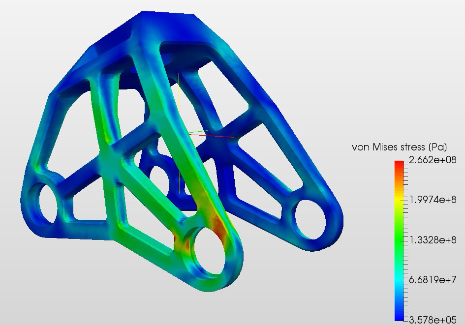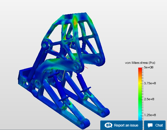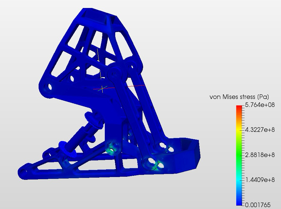 The too asymmetrical displacement is weird because the assembly is setup and loaded symmetrically, but I don’nt mind it because I have another SimScale project working together with and axle that tightly connects the two sides of upright fork.