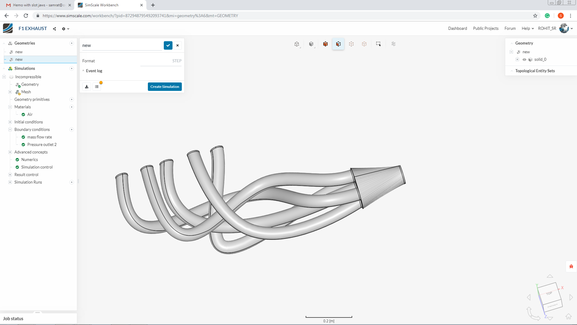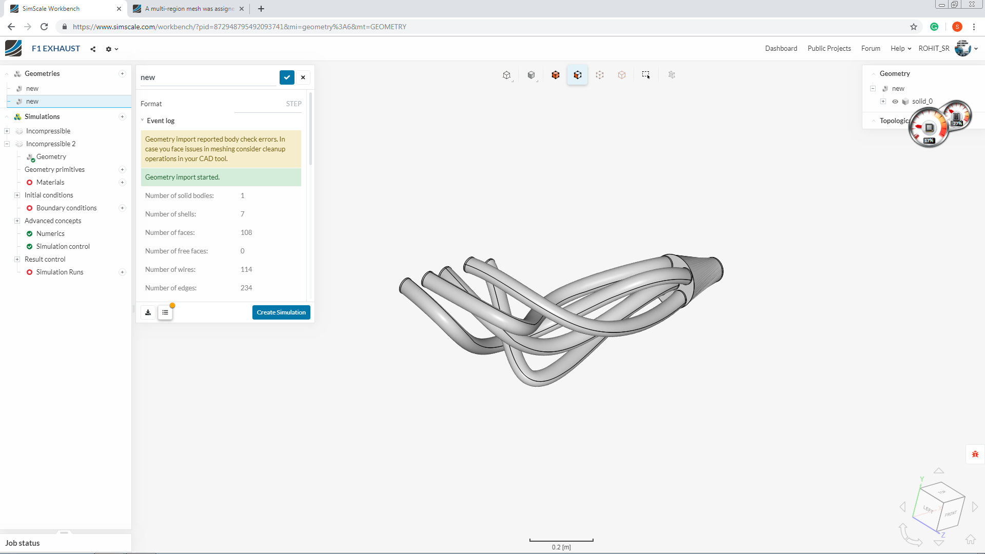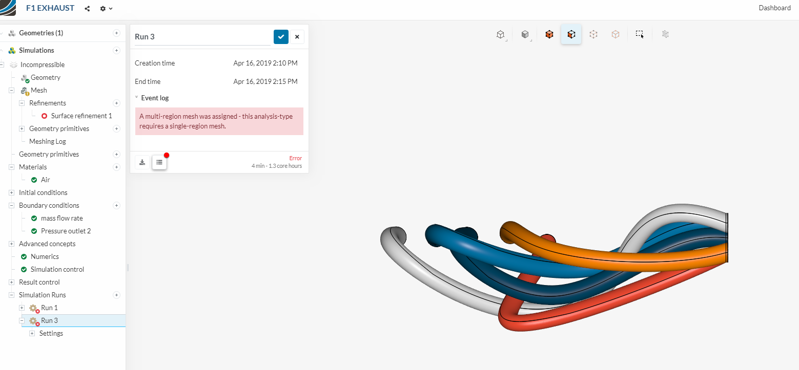 Do you have a CAD file of this exhaust or you created the CAD model by yourself?? Even if your purpose is to just practice simulating the exhaust manifold, you should take a genuine CAD(there are many models available on grabcad). But the issue is that you will not have any information/data to feed into the system while defining the B.C.'s.